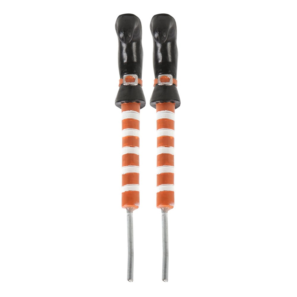 Add a touch of whimsy to any plant pot, planter or garden bed with this pair of spindly witch's legs. With orange and white striped socks peeking out of black boots, these ornaments are sure to bewitch plants both inside and out.