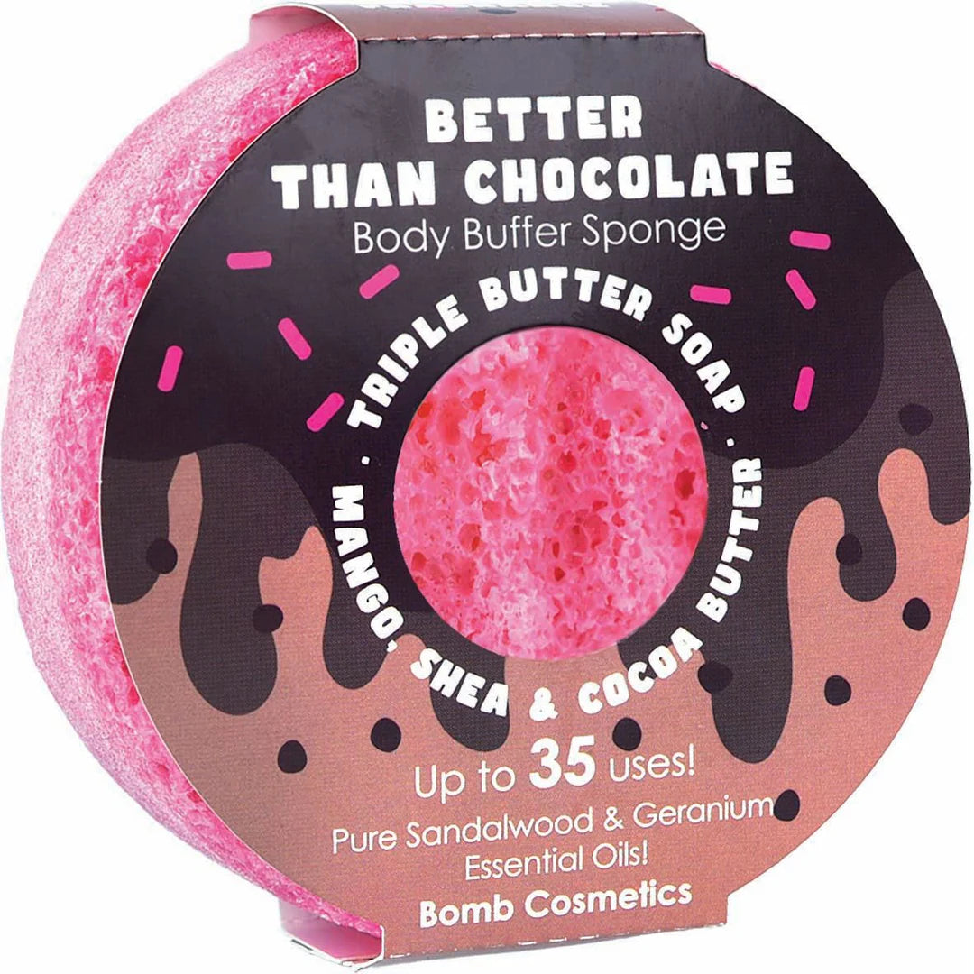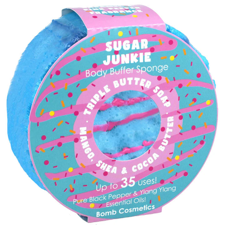 Our rich, triple butter Body Buffers massage, exfoliate, moisturise and cleanse all at once! Use in the shower, and rub the textured or smooth sponge all over your body for the smoothest softest, most aromatic skin ever! All with pure essential oils and for 20-50 uses!